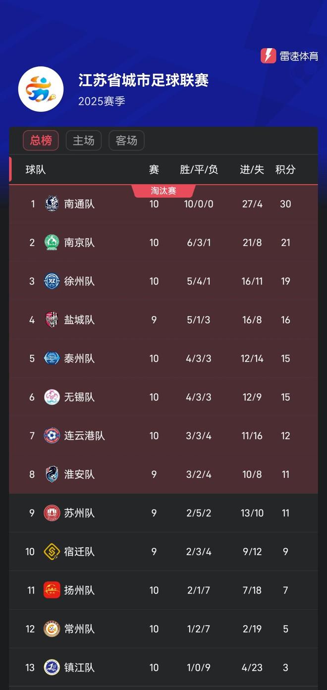 按照苏超联赛的赛制,常规赛阶段13队采用单循环制,每队进行12场比赛,排名前8的球队进入淘汰赛。