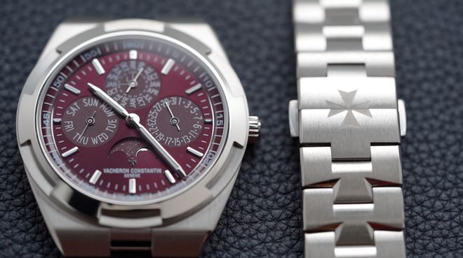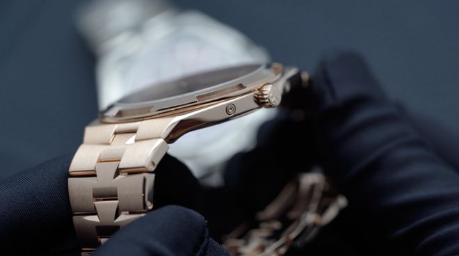 同时作为表壳表链一体式高级运动休闲风腕表,新款纵横四海的表链也相当有特色,它并不是传统的三节式表链,而是融入了江诗丹顿标志马耳他十字元素,形成类似“凸”字结构的造型,并利用缎面打磨和镜面抛光修饰,辨识度极高。表链纤薄,与腕表中壳延伸出的表耳厚度一致。
