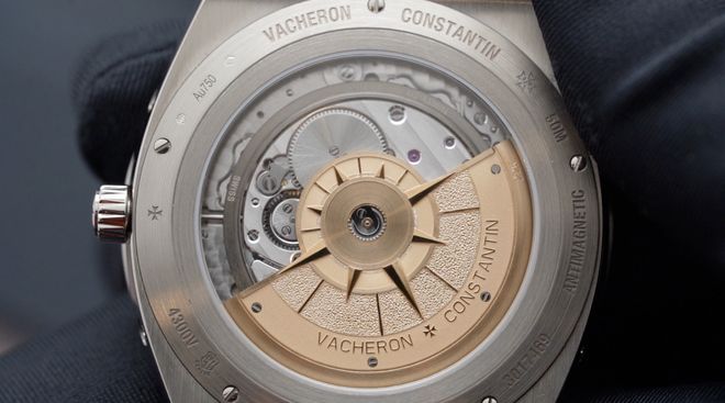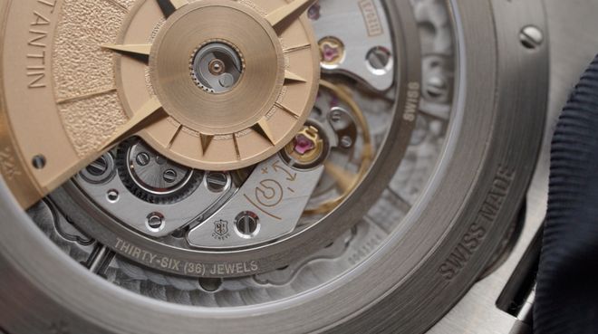 透过蓝宝石透明底盖可以看到22K金质自动上链摆陀,摆脱上装饰着玫瑰罗盘图案,这是纵横四海系列的精神图腾之一,它是过去人们驾驭船只纵横四海最重要的仪器。