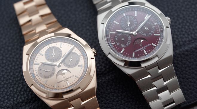 这次最大的改变,就是全新的色系搭配。18K白金搭配勃艮第红表盘,18K 5N粉红金搭配同色表盘。
