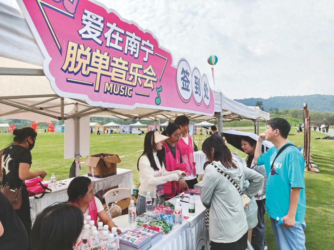脱单音乐会、赏花、chao玩艺术区、趣味运动、生活市集、音乐演出……5月1日,在南宁青秀山风景区音乐大草坪,以“逃离城市焦虑、回归自然本真”为主题的活动火热进行,市民游客在享受户外运动乐趣的同时,也领略了青秀山的自然风光与人文魅力。