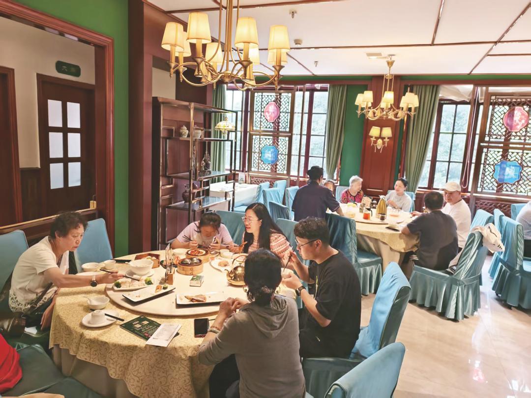 5月1日上午,在“三街两巷”的万国酒家餐厅,一场味觉与听觉的双重盛宴正在上演。古色古香的建筑与精致的早茶点心相得益彰,营造出浓郁的岭南风情。食客们围坐桌前,点上一壶香茗,搭配虾饺、烧麦、叉烧包等经典早茶点心,开启惬意的假期休闲时光。餐厅内,悠扬的戏曲声声入耳,粤剧演员身着华丽戏服,唱腔婉转,一颦一笑间尽显传统艺术的魅力。“今年‘五一’不想出去人挤人,在南宁喝喝早茶逛逛街,轻松悠闲地过节也挺好的。”带着一家老小来喝早茶的市民余先生表示。